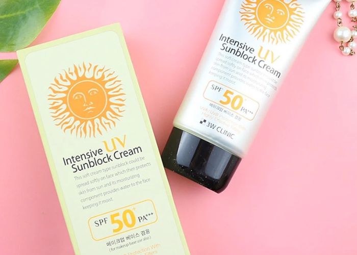 - Kem chống nắng UV Sun Block Hàn Quốc với chỉ số SPF 30: Đây là loại kem chống nắng thường được sử dụng để bảo vệ da khỏi tác hại của tia UVB. Với chỉ số SPF 30, sản phẩm này có khả năng chống tia UVB và tia UVA đến 97%.